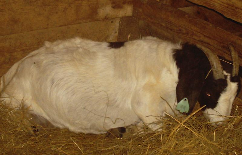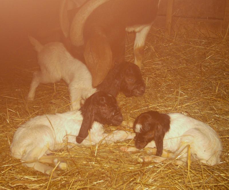 The birthing area is a large stall, but as each doe gives birth, they are put in a smaller stall and for the first three days they are rested, lie in a stall and then put in a small barnyard with their doe for a few hours.