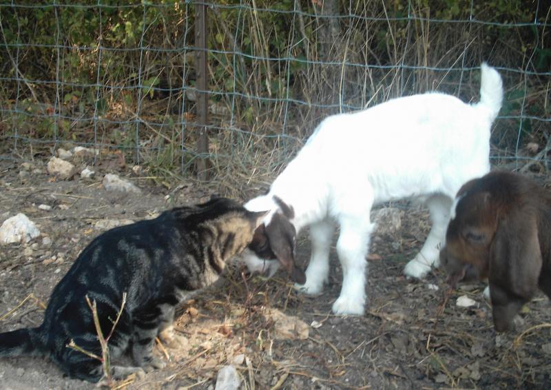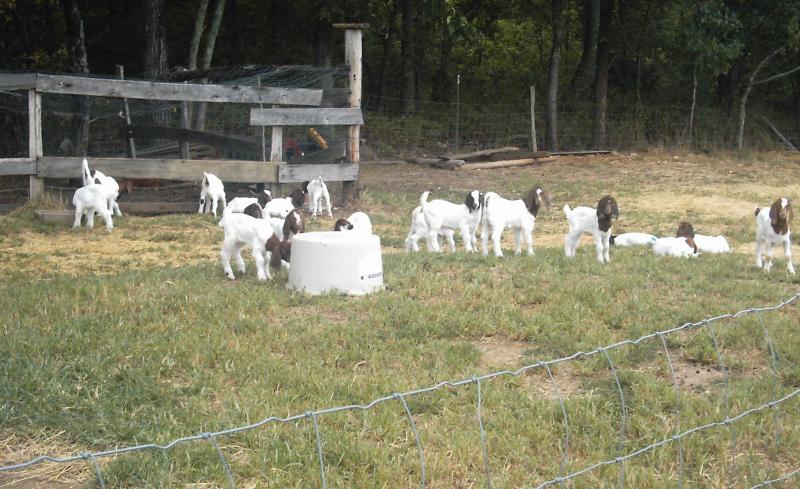 At three weeks old, most of the kids are romping, trying out new things to get into and venturing learning what grasses they can and can't eat. They are offered their own food in a feeding lot the mothers can not get into and gobble up and they grow. Once again they learn by repetition.
