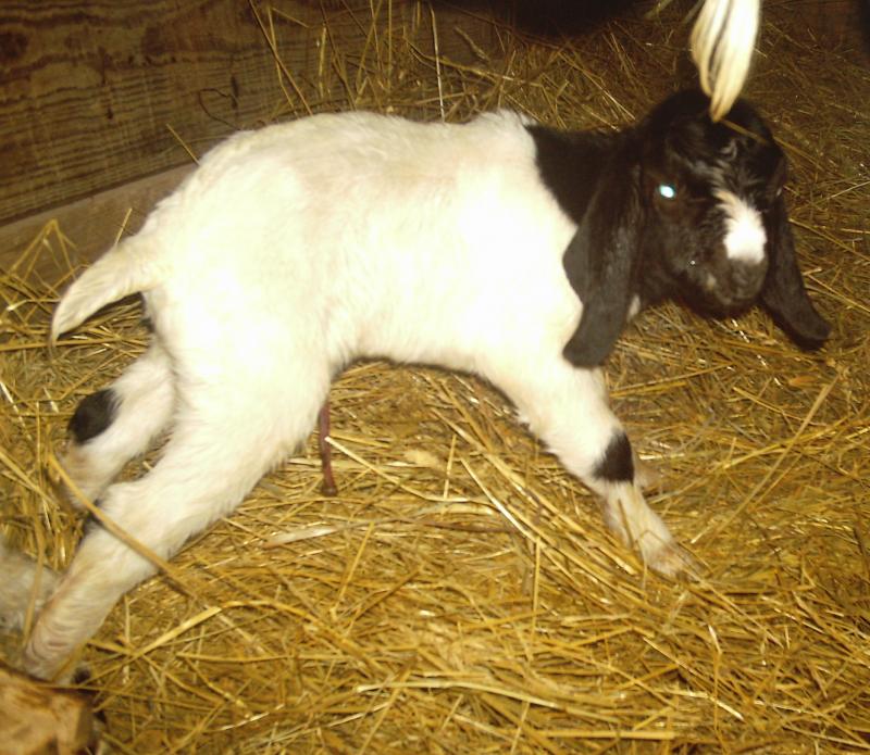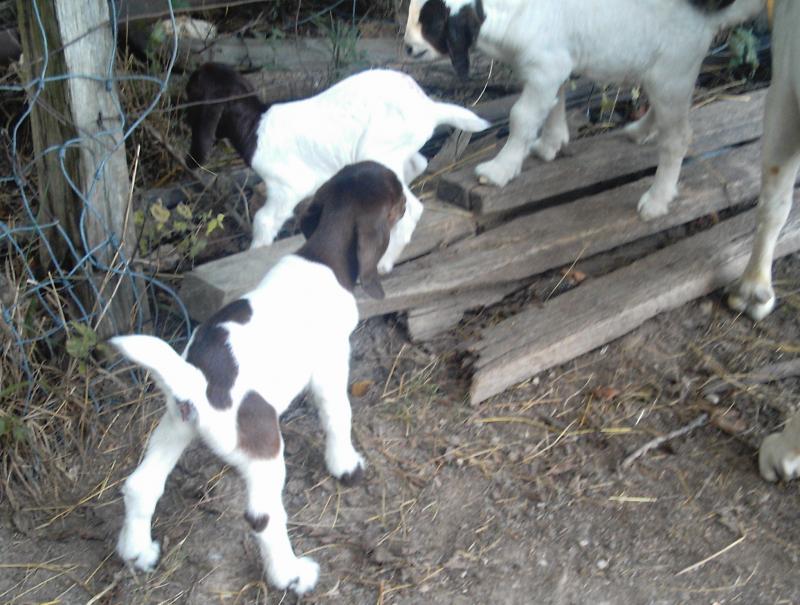 Again, this is a dangerous time for the babies. They have got to get that first very important colostrum from their doe for the immune system to function properly. It is also during this time that we look for a black plug to release opening up the bowels on the little one and his first urination. Both are extremely important. Quite a few problems can be eliminated when we spot the body functions working properly. It is also the time of the doe's getting their babies under control. They coo to them, stick them in a corner to hide them, make them sleep then the doe will feel safe to go off and graze returning to nurse them and do the process all over again.