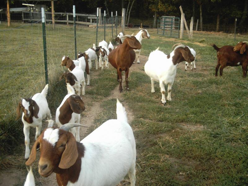 These type of goats are herd animals and if one is not with the pack, something is wrong. In the case of birthing, the doe will leave the pack and head for a spot she has chosen to have her babies then hide them. For domestic goats being raised for market, we can't have that, so I have a controlled herd.
