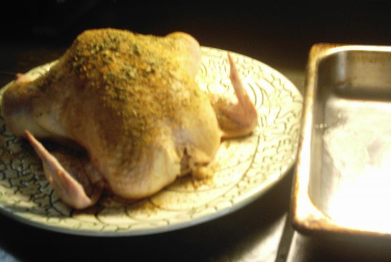 This particular Chickie came from a local farmer that raises chickens but a good bird from the grocery store is just fine as long as it is fresh, not frozen and has a nice yellow hue to the skin. If you are buying for later cooking, take it home and freeze it in YOUR freezer.